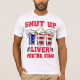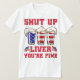 CAMISETA CALA O FÍGADO QUE ESTÁS BEM AZUL BRANCO VERMELHO