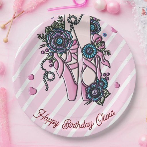 calçados de balé bonito para sua pequena bailarina, acentuados com flores e miçangas. Um fundo de faixa rosa e branca completa o conjunto. Pode ser personalizado.