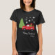 Adicione um toque de vintage festivo às suas roupas da família de férias com esta camiseta personalizada. A camisa tem presentes de caminhão vermelho, árvores de Natal com ornamentos e neve, e o texto Feliz Natal com seu primeiro nome. O texto pode ser personalizado com base em suas preferências. A camisa faz um excelente para a sua família, casa, roupa sazonal de inverno! Bonito para famílias que querem combinar no Natal!