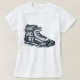 Um amante de caminhada com uma bota de caminhada e palavras que dizem caminhar mais se preocupam menos. Esta design parece muito eficaz nesta Camiseta das Mulheres