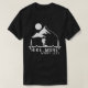 Este design de caminhada ao ar livre e da natureza apresenta um caminhador, com uma montanha e uma lua atrás deles, um batimento cardíaco, e a citação, "Caminhe mais, se preocupe menos."
