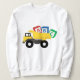 Aprender o alfabeto com caminhões de construção é sempre divertido. Uma ilustração fofa de um caminhão de brinquedo com blocos coloridos do alfabeto ABC. Presente de Natal ideal, presente de aniversário, decoração infantil, arte de quarto infantil, decoração doméstica ou de volta à escola.