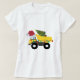Um belo exemplo de um veículo de caminhões de Natal vestindo um chapéu de Papai Noel e decorado em luzes de Natal que transportam uma árvore de Natal festiva. Perfeito para rapazes e raparigas que adoram caminhões de construção, caminhões de brinquedos ou maquinaria pesada. Uma camiseta de Natal ideal para entusiastas de caminhões grandes ou pequenos, meninas ou meninos.