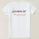 Camisa padrão da empresa com logotipo da empresa na frente e slogan da empresa e site na web na parte traseira.