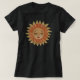 Um simples sol ou girassol no estilo de vassoura, dependendo de como você olha para ele. . Todo o design está aflita por ter um visual antigo Em lindas cores de laranja e amarelo, o sol tem uma face pacífica, e está dormindo ou meditando. Este design seria melhor em camisas mais escuras, pois é bastante leve.