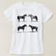 A T-Shirt perfeita para amantes de cavalos! Esta camiseta apresenta quatro desenhos originais de pincel e tinta de Lynn Caselles-Caldwell, com cavalos árabes, andaluzes, clydesdale e Thoroughcriado na frente. Também inclui um texto gráfico "Cavalos" no verso. Excelente para uso diário em casa, na cidade, em shows de cavalos ou no celeiro.