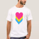 Camisa-T básica com design de coração em cores de pansexualidade; bandeira do orgulho panar cor-de-rosa, amarela e azul; design do orgulho pano-arco-íris