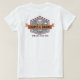 Camiseta feminina com logotipo pequeno na frente e logotipo maior na parte traseira