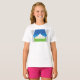 Vista pela janela de uma grande tenda branca sobre grama verde. Esta design parece muito eficaz nesta Camiseta de Meninas
