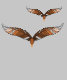 Pássaros crescendo juntos. Um pássaro grande e um pequeno. Cada um criou com duas imagens marrons de pena para fazer asas. Componentes gráficos de oval e de linha criam as cabeças e os bicos.