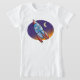 Este design é um foguete. O foguete está no estilo de desenho animado e está no espaço com a lua ao fundo. Este design de foguete parece excelente nesta Camisa-T-Raparigas