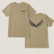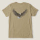 O texto na frente diz "Alto Flyer", uma pequena arte de águia de bolso na frente e na grande águia em voo prestes a bater na parte de trás da camisa. © Desenhada com caneta preta fina e sobreposta com uma pequena cor plana por Sarah Trett. www.sarahtrett.com para www.mylittleeden.com hospedada pelo zazzle