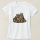 Esta t-shirt retrata um trio de kits de guaxinim bonitos dentro e à volta de um velho toco.