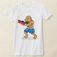 Mama o melhor amigo e o esporte do boxe combinado neste design de boxe para cães. Esta design é muito divertida e está muito bem feita. O cachorro está lutando em pé onde shorts azuis e luvas de boxe vermelhas. Este boxe de cachorro parece excelente nesta t-shirt feminina. Perfeito para si mesmo ou como presente