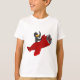 Kids T-Shirt com design com ilustração de um pinguim que voa num plano vermelho; ilustrado por Radka Kavalcova / MaxiHarmony