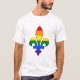 T-Shirt Básico com símbolo fleur-de-lis (fleur-de-lys ou flor de lírio) com faixas arco-íris de LGBT (pessoas lésbicas, gay, bissexuais e transexuais), design orgulho gay