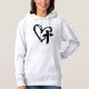 Esta camisola tem um coração intersectado por uma cruz na frente e uma mensagem nas costas para agradecer a Deus e confiar em Deus.