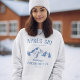 Camisola divertida de apres ski para noivas com um desenho de montanhas de inverno, árvores, um esquiador e um modelo de texto que é fácil de personalizar.