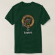 Crachá da crista Campbell rodeado por uma correia e fivela sobre fundo tartano. Texto personalizado.
