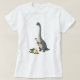 A friendly long‑neck dinosaur calmly holding a toasted marshmallow on a stick while a tiny green dragon happily warms itself by a small campfire. Soft colors, rounded shapes, and cheerful expressions give the scene a cozy storybook feel. The contrast in size between the gentle giant and the little dragon adds charm, creating a playful moment of friendship and warmth in a whimsical fantasy setting.
