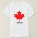 Camisa-T do Canadá com Folha de Mapeamento Vermelha e a palavra CANADA em Texto Preto