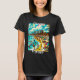 cena artística de estilo quadrinhos de pop de arte de uma praia com vibrações vintage. A Arte da IA retrata pessoas se divertindo na praia, na praia, com hotéis e apartamentos ao fundo, palmeiras bonito, guarda-chuvas coloridos e um lindo céu azul nublado em Cancún, México.