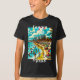 cena artística de estilo quadrinhos de pop de arte de uma praia com vibrações vintage. A Arte da IA retrata pessoas se divertindo na praia, na praia, com hotéis e apartamentos ao fundo, palmeiras bonito, guarda-chuvas coloridos e um lindo céu azul nublado em Cancún, México.