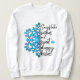 Esta camisa de floco de neve impressa na pata diz "desejos de flocos de neve e beijos doces de cachorro", e encantará todos os donos de animais de estimação e amantes de cachorros neste inverno! Floco de neve é feito de estampas de pata azul em um fundo branco.