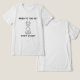 A t-shirt chegou dentro do tempo anunciado e apresentou-se com todas as características que estavam anunciadas. Boa qualidade do tecido e bons acabamentos. O tamanho veio conforme o pedido. Perfeita! Fiz apenas uma pequena personalização no texto, e o mesmo assim veio, bem como todo o restante texto, devidamente impresso e exactamente como estava anunciado na página. Sem falhas!