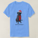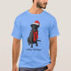 Black Labrador Retriever vestindo um chapéu vermelho de Papai Noel e cachecol.