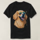 Um rosto feliz de cão que recupera ouros, vestindo óculos de sol de tendências,