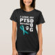 Os donos de cães de estimação treinados que sofrem do Transtorno de Estresse Traumático Poste de PTSD adorarão vestir um desses em apoio ao seu melhor amigo com patas. O texto branco em negrito lê I Love My PTSD Service Dog (Adoro o Cachorro de Serviço PTSD) com fita de reconhecimento de cor e um gráfico de impressão de pata.