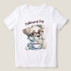 Um cachorrinho fofo com olhos grandes e curiosos sentados ao lado de uma xícara de café a vapor