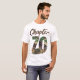 Design de Camisa T de Aniversário, 70 de Aniversário, suavemente bonito e elegante, com o Capítulo 70 centralizado, com o Impressão 70 do Exército Verde. Texto "Capítulo 70" com licor marrom, vidro cognac, cigarro fumante e chapéu verde de fedora com banda marrom. Adicione seu próprio texto curto à parte de trás da camisa. Me mande mensagens para design adicionais. ©2022 Designs do Partido Sassy