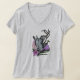 Uma cabra é cercada por uma lua roxa leve, flores roxas e magenta, e folhas.