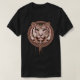 Captivação e representação artística do rosto de um tigre que impressiona com sua atenção aos detalhes. O foco principal é o tigre, que cava pelo em cor-de-rosa macio, decorado com padrões intrincados que ressaltam a beleza natural e a elegância do animal. Os olhos azuis brilhantes do tigre cativam o espectador, dando ao rosto uma intensa expressão de força e graça. No geral, esta design combina um simbolismo poderoso com uma paleta de cores suaves, fazer-a atraente e profunda.