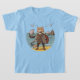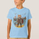 Um gato viking destemido fica na praia com machado e escudo, pronto para a aventura.