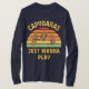 É uma design legal sobre um grupo de capibaras engraçados e fofos brincando entre si. Atrás do capybaras há um arco muito bonito com várias camadas multicoloridas.