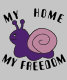 Um caracol com o slogan, minha casa, minha liberdade. A design e o texto podem ser alterados.
