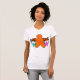 Mostre seu lado criativo com esta camiseta feminina com um design de marionete colorido. A figura laranja em negrito, que controla os caracteres azuis e rosa, cria uma aparência única e atraente para os olhos. Confortável e versátil, esta camisa é perfeita para excursões casuais, visto cotidiano, ou para dar a alguém que aprecia trabalho de arte viscosa e simbólica. Adicione um toque de originalidade ao seu guarda-roupa com este design artístico e brincalhão.