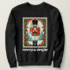 Um soldado clássico de nutcracker design dentro a uma borda de selo postal torna esta camisola ousada e eterno. Com a inscrição de férias "Feliz e Brilho", é ideal para eventos festivos e visto aconchegante de inverno.