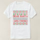 Esta camiseta branca apresenta um design imitando um suéter de Natal tradicional. O texto "QUERIDO PAPAIS NOEIS QUE FUI ENQUADRADO" aparece a vermelho, rodeado de padrões festivos, incluindo flocos de neve, árvores de Natal, arcos e formas geométricas em vermelho, verde e preto. O design geral pretende parecer uma roupa de férias tricotada com uma mensagem humorística.