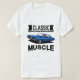 Esta é uma renderização de um carro músico clássico azul americano com gráficos antigos no fundo para um retrô estilado.