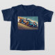 Camiseta Carro de corridas azul e laranja na pista