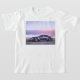 esta t-shirt infantil apresenta um carro desportivo legal com um espantoso efeito na estrada no horizonte