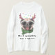 Eu me qualifico para UGLY? Um rosto de cão feio vestindo óculos escuros de sol, enredado em luzes e vestindo galhadas e um cachecol verde.