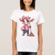 Cartoon cabra encantador com arco rosa e vassoura, expressando asas com uma camiseta humorística.