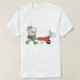 Camiseta Cartoon Farmer com Wheelbarrow e Ferramentas