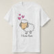 Cartoons bonitos afundam ovelhas brancas com rosto rosa e orelhas cinzas. Acima de sua cabeça estão três corações cor-de-rosa e abaixo de uma modelo para usar como está ou substituir pelo seu próprio texto.