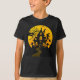 Imagem de Halloween em uma camiseta de uma casa assombrada e uma bruxa assustadora.